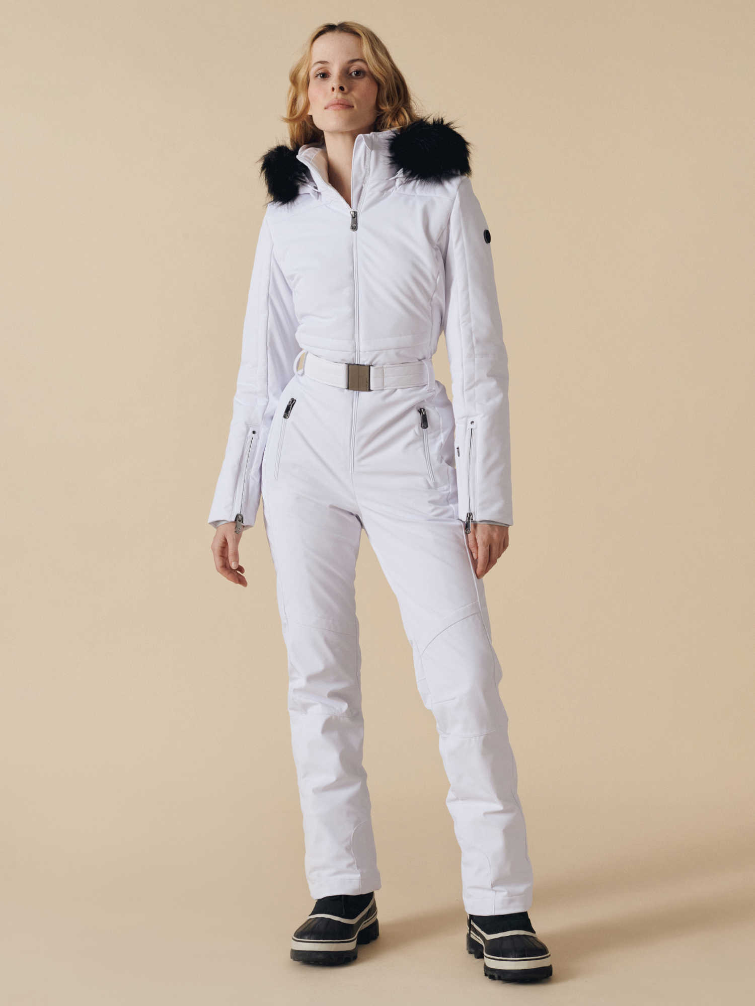 Модель продумана до мелочей: съёмный регулируемый пояс и капюшон, возможность присоединения меховой опушки, анатомический крой коленей и снегозащитные гетры повышают удобство и функциональность. Термосварные швы дополнительно препятствуют проникновению влаги, а стратегически расположенные карманы, включая отделение для ски-пасса, делают комбинезон практичным для катания в горах.