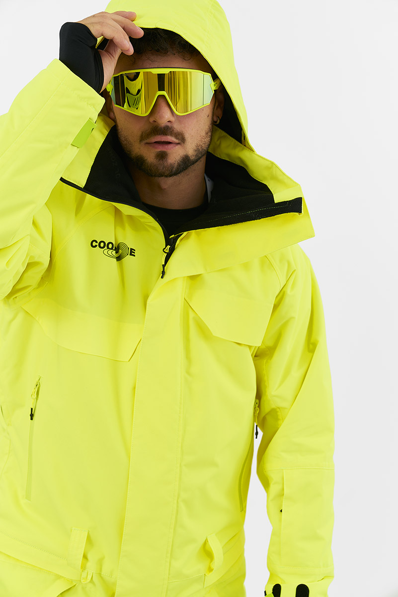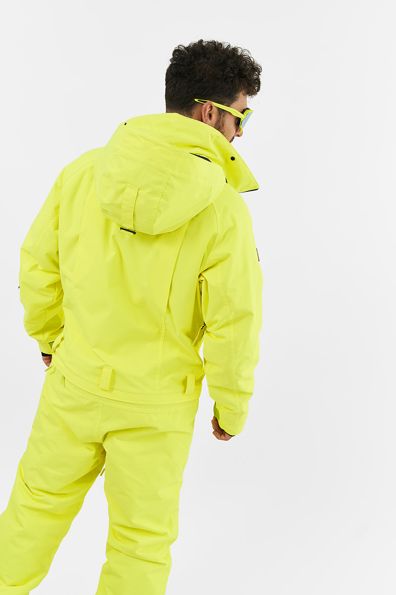 Внешний слой прочный и устойчив к истиранию. Мембрана отвечает за водостойкость, ветрозащиту и паропроницаемость. Швы герметично проклеены. Свободная посадка предполагает наличие базовых и утепляющих слоев. Максимально защищает от неблагоприятных погодных условий. Закрытая под планкой с магнитами центральная молния, эластичные манжеты и снегозащитные гетры для крепления к ботинкам, регулировка длины штанин, эргономичный регулирующийся капюшон, который с легкостью можно сочетать со шлемом и маской.