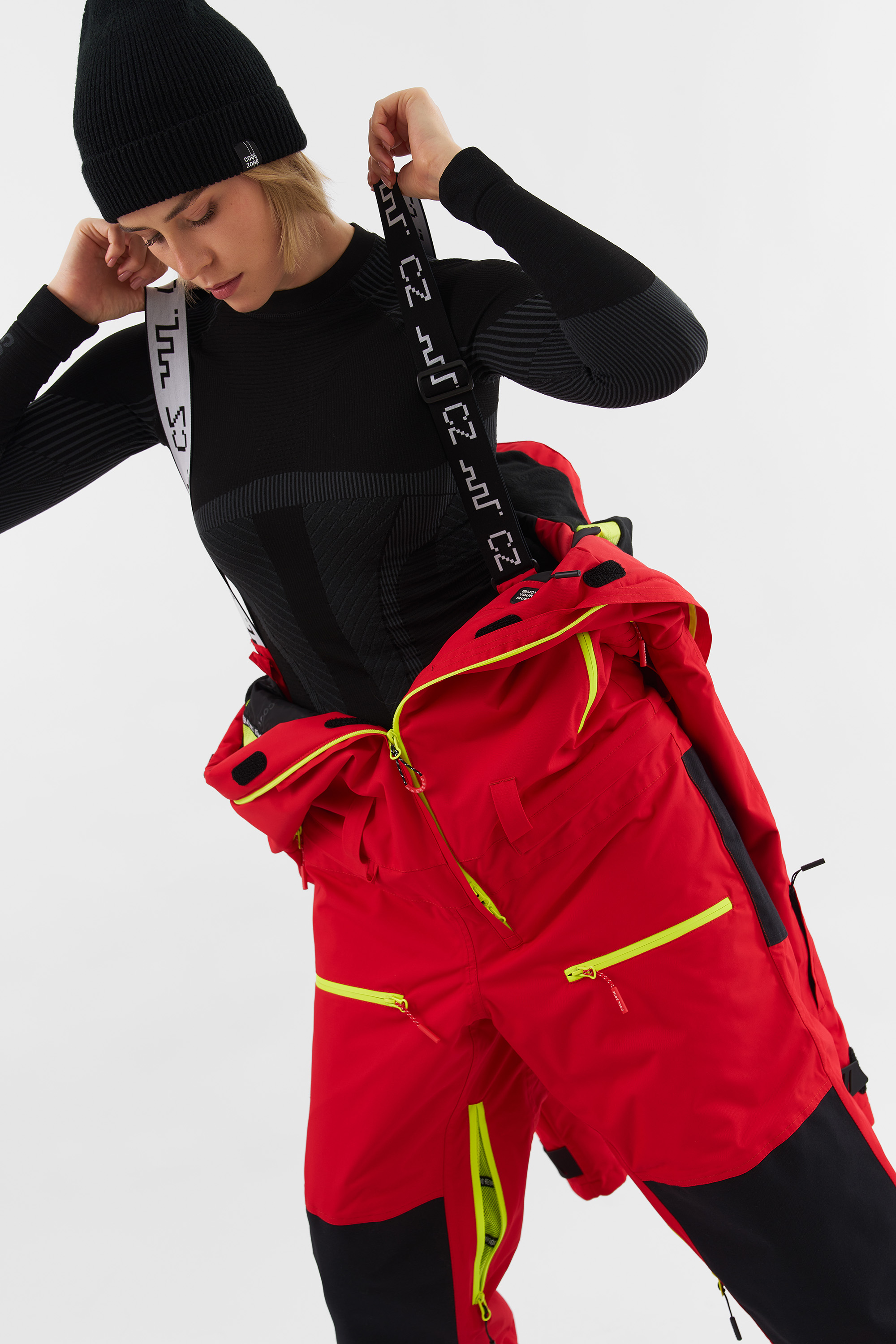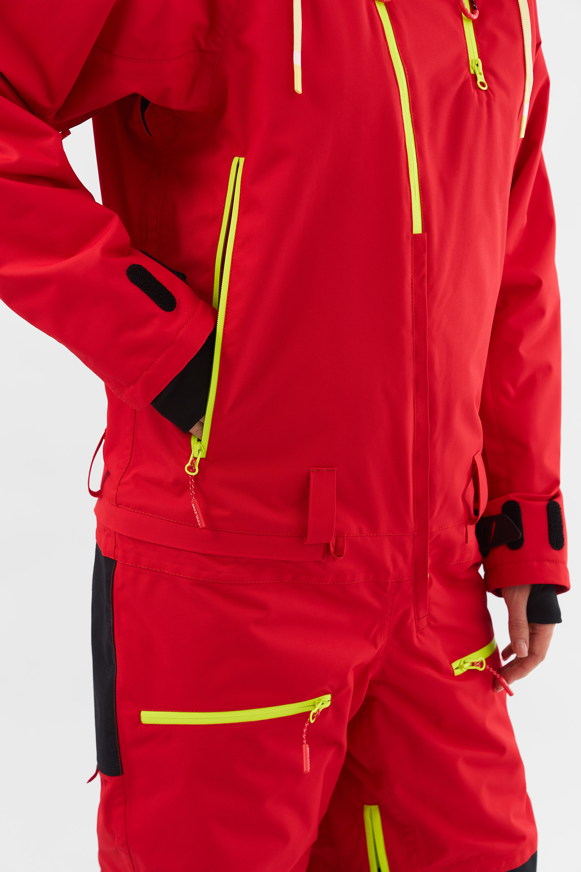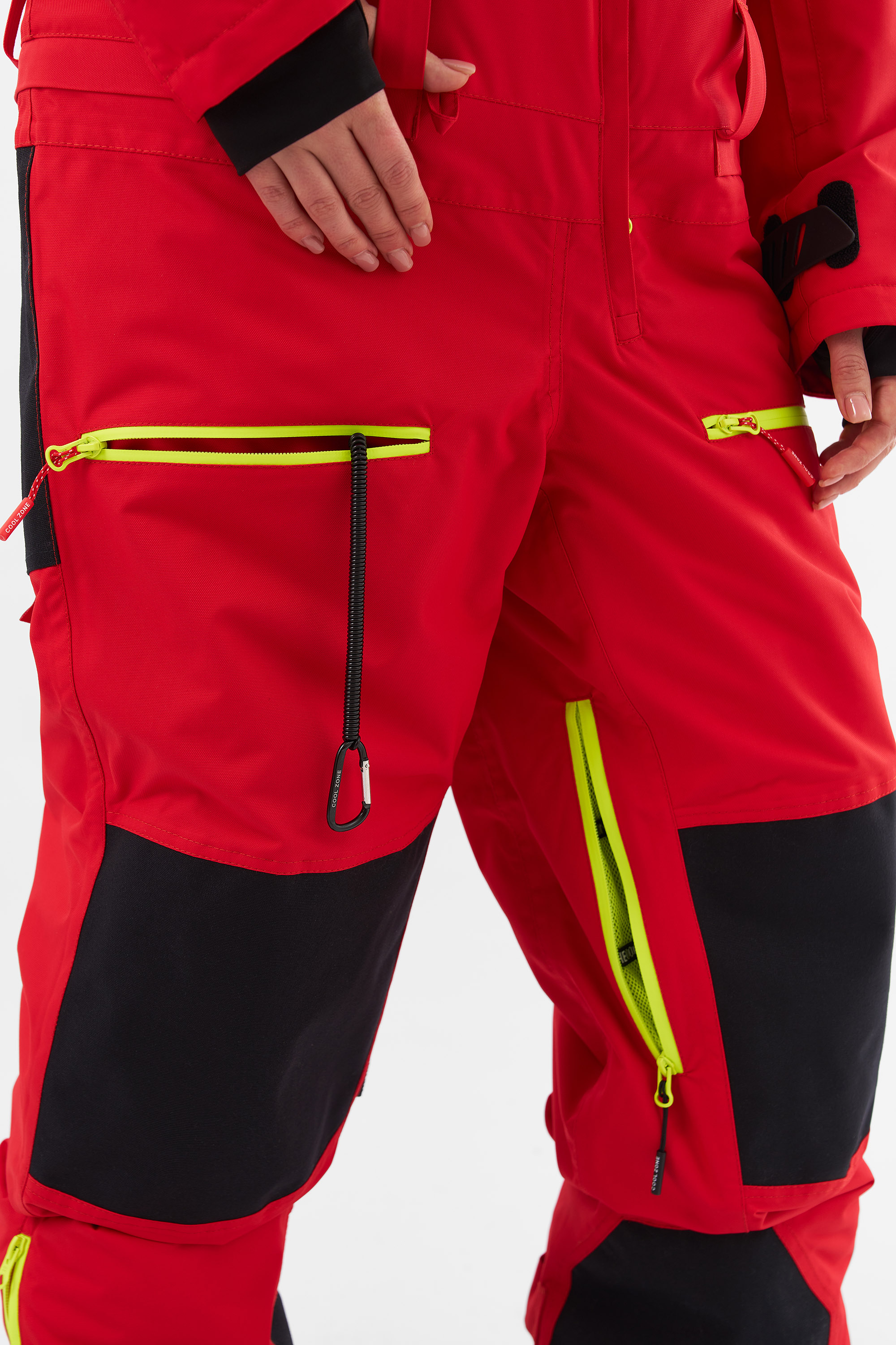 NICE подходит для любителей сноукайтинга. Внутренние липучки у центральной молнии позволяют прикрепить деталь для вывода крюка от трапеции, а три бегунка на центральной молнии предоставляют возможность надеть трапецию под комбинезон (данная деталь приобретается отдельно и не входит в комплектацию комбинезона). Этот функционал позволяет избегать попадания ветра и снега под комбинезон во время катания.