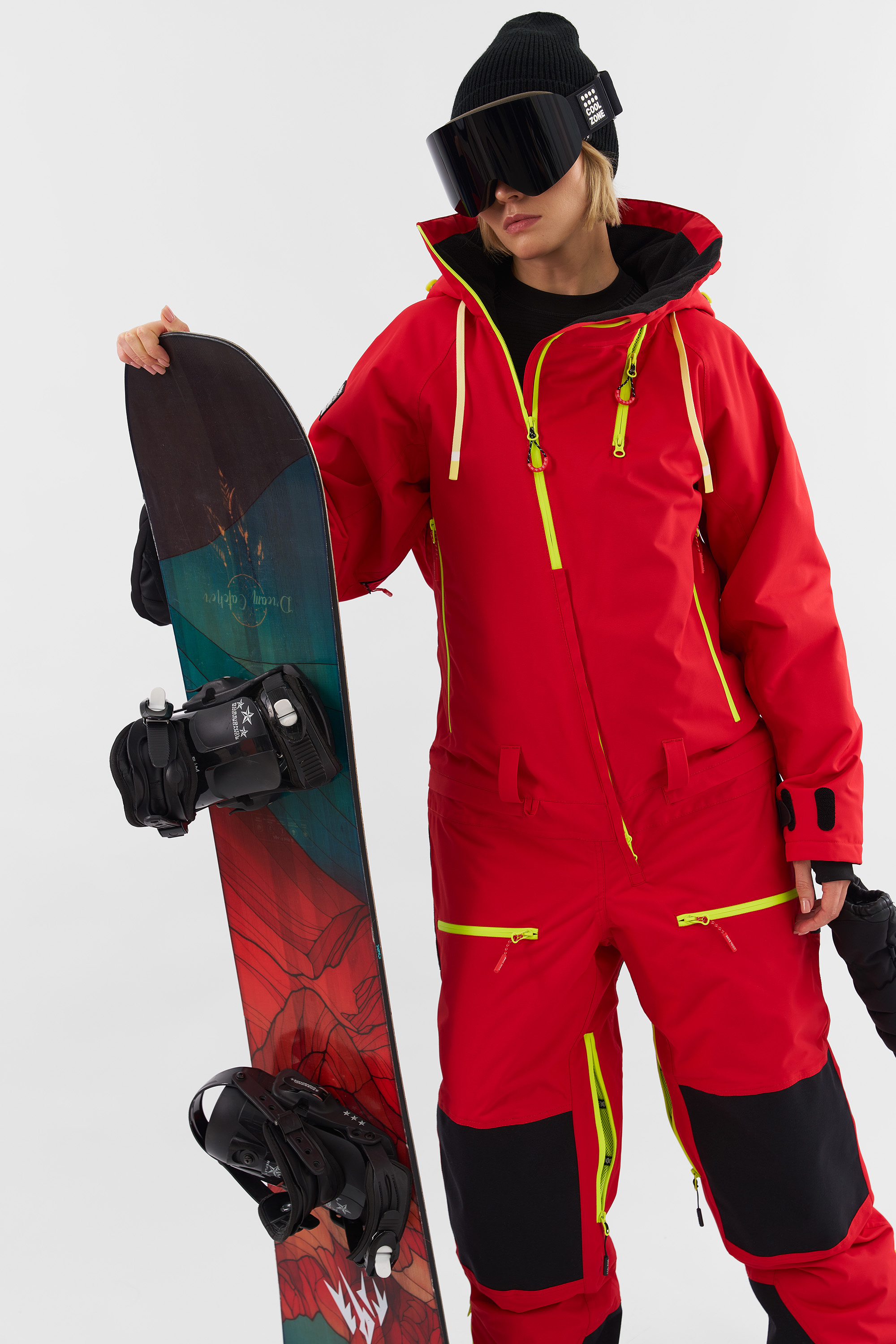 Высокий воротник-стойка с дополнительной вентиляцией выступает преградой встречному потоку холодного ветра или снегопаду. Внутренние регулируемые лямки обеспечивают комфортное использование комбинезона в помещении.