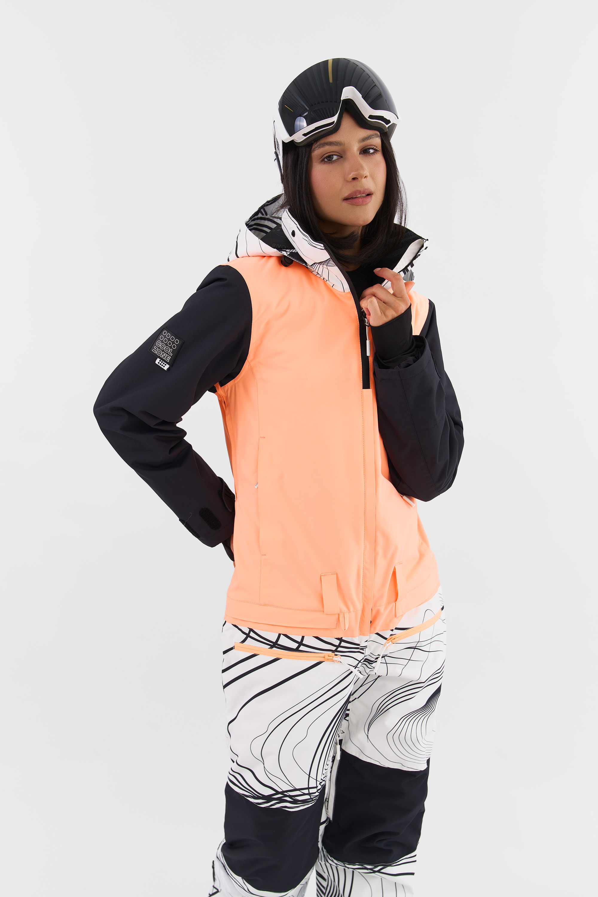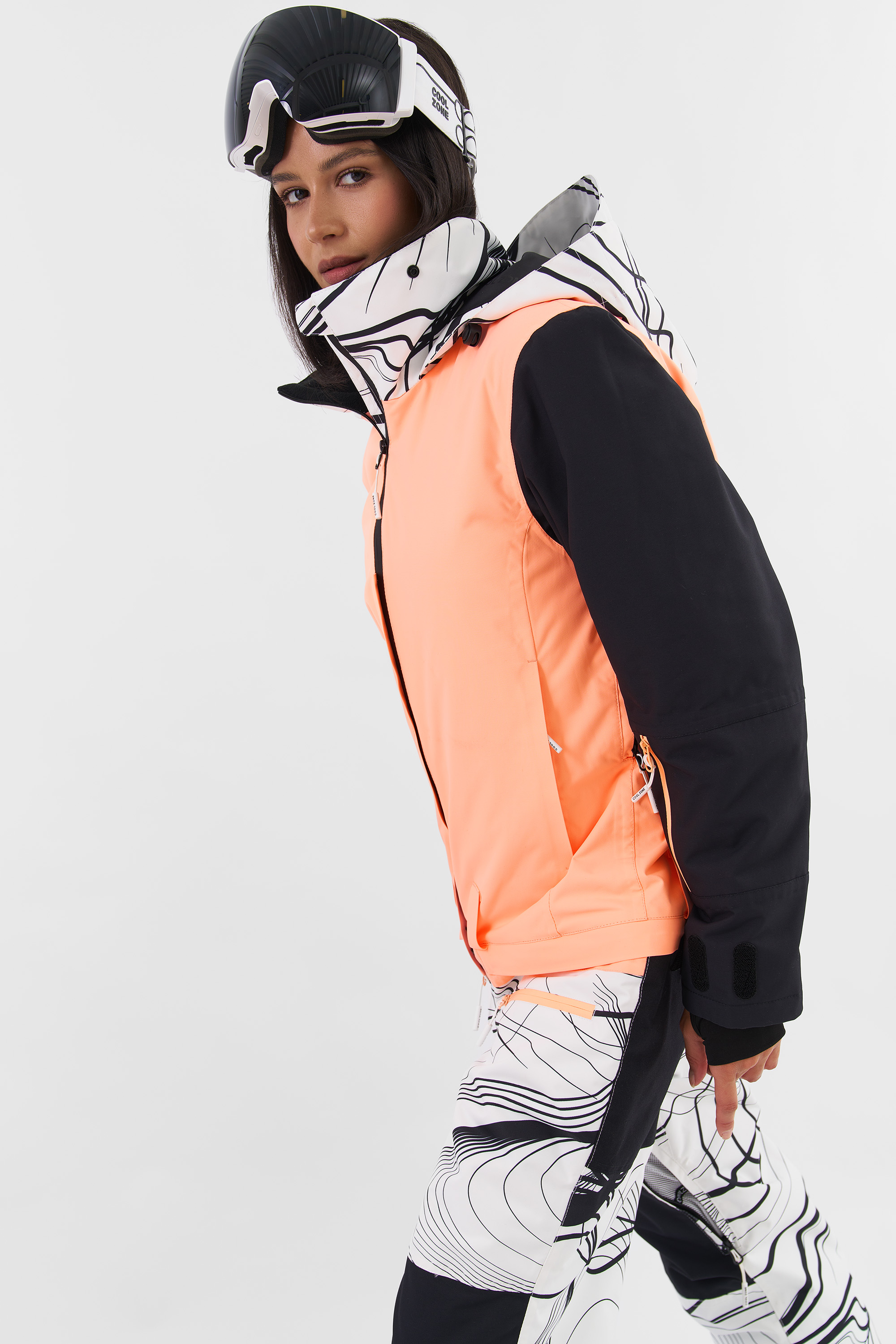 Комбинезон CoolZone Liman W KN1142/65/NEO46/20 (принт линии/неоперсиковый/черный) 25