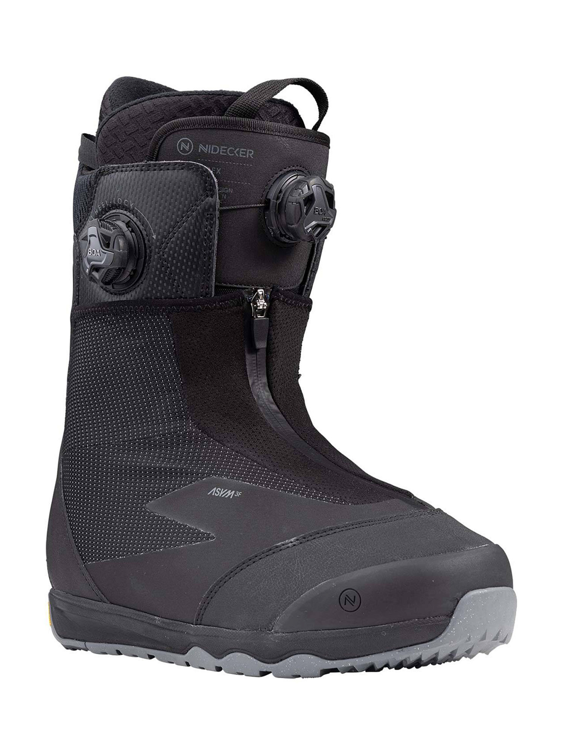 Dual BOA® — система с двумя дисками (над языком и сбоку), позволяющая независимо регулировать верхнюю и нижнюю зоны. Текстильный шнурок TX3 обеспечивает точную фиксацию ASYM 3F – ассиметричная конструкция ботинка идеально сочетается со стрепами креплений Nidecker и Flow, что исключает чрезмерное давление на стопу.