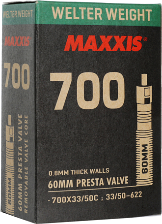 Велокамера Maxxis Welter Weight предназначены для агрессивных гонщиков, для которых очень важна долговечность камеры. Эти камеры среднего веса предназначены для всех дисциплин езды.