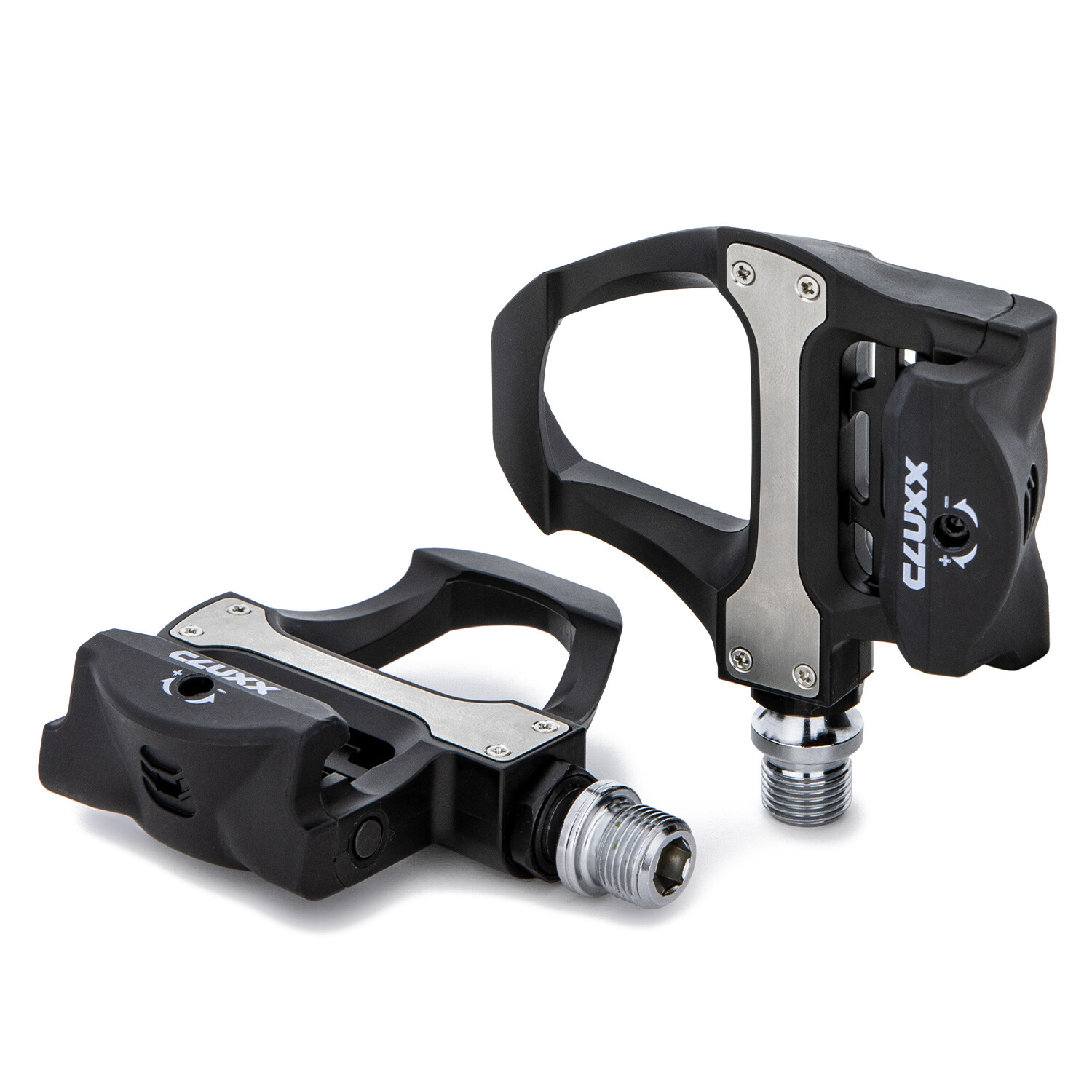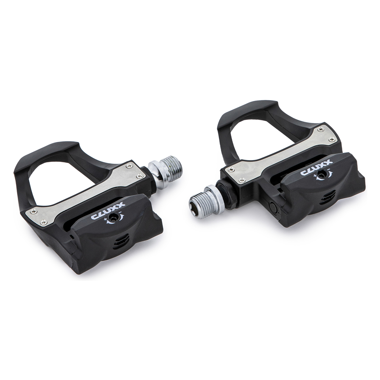 Контактные педали для шоссейных велосипедов Cluxx Ronde 100 имеют корпус из легкого и крепкого пластика. Ось из хромомолибденовой стали прочнее, жестче и легче стальной. В комплекте с педалями также поставляются шипы SPD-SL.