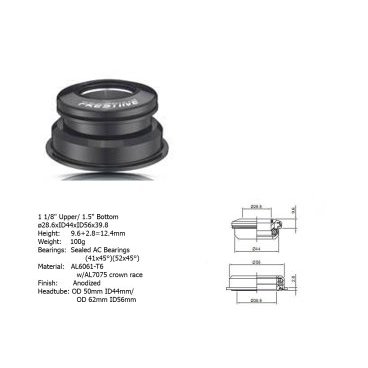 Рулевой набор AUTHOR ACO-А13H Int. алюминий. полукартриджный, для рулевой 1 1/8"/1 2.5" AHEAD