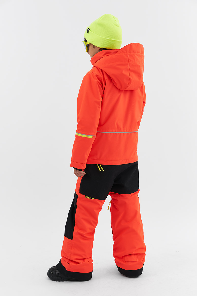 Комбинезон PIXEL выполнен из прочной и водонепроницаемой мембранной ткани с практичным и стильным дизайном, влагозащитными молниями, функциональными карманами и эргономичным капюшоном, который можно интегрировать со шлемом. Спина и задняя часть штанов внутри из флиса, герметично проклеенные швы, горизонтальная молния для технических нужд, снегозащитные гетры и эластичные манжеты для дополнительной защиты от снега. Вся коллекция имеет специальную систему регулировки, которая позволяет увеличить размер по мере взросления и роста ребенка.