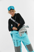 Данная модель подходит для любителей сноукайтинга. Внутренние липучки у центральной молнии позволяют прикрепить деталь для вывода крюка от трапеции, а три бегунка на центральной молнии предоставляют возможность надеть трапецию под комбинезон (данная деталь приобретается отдельно и не входит в комплектацию комбинезона). Этот функционал позволяет избегать попадания ветра и снега под комбинезон во время катания.