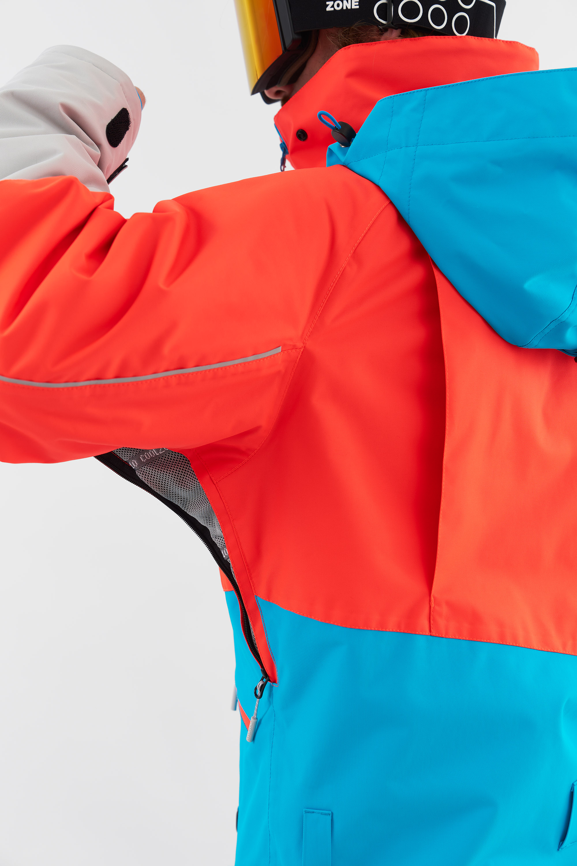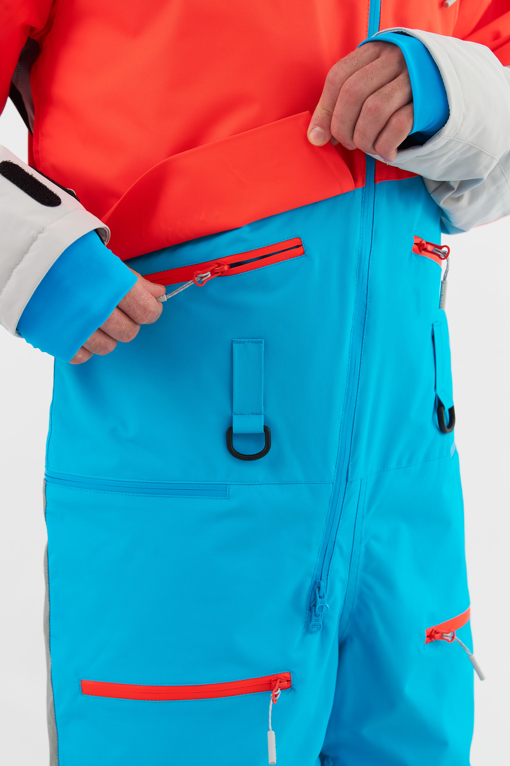 Данная модель подходит для любителей сноукайтинга. Внутренние липучки у центральной молнии позволяют прикрепить деталь для вывода крюка от трапеции, а три бегунка на центральной молнии предоставляют возможность надеть трапецию под комбинезон (данная деталь приобретается отдельно и не входит в комплектацию комбинезона). Этот функционал позволяет избегать попадания ветра и снега под комбинезон во время катания.