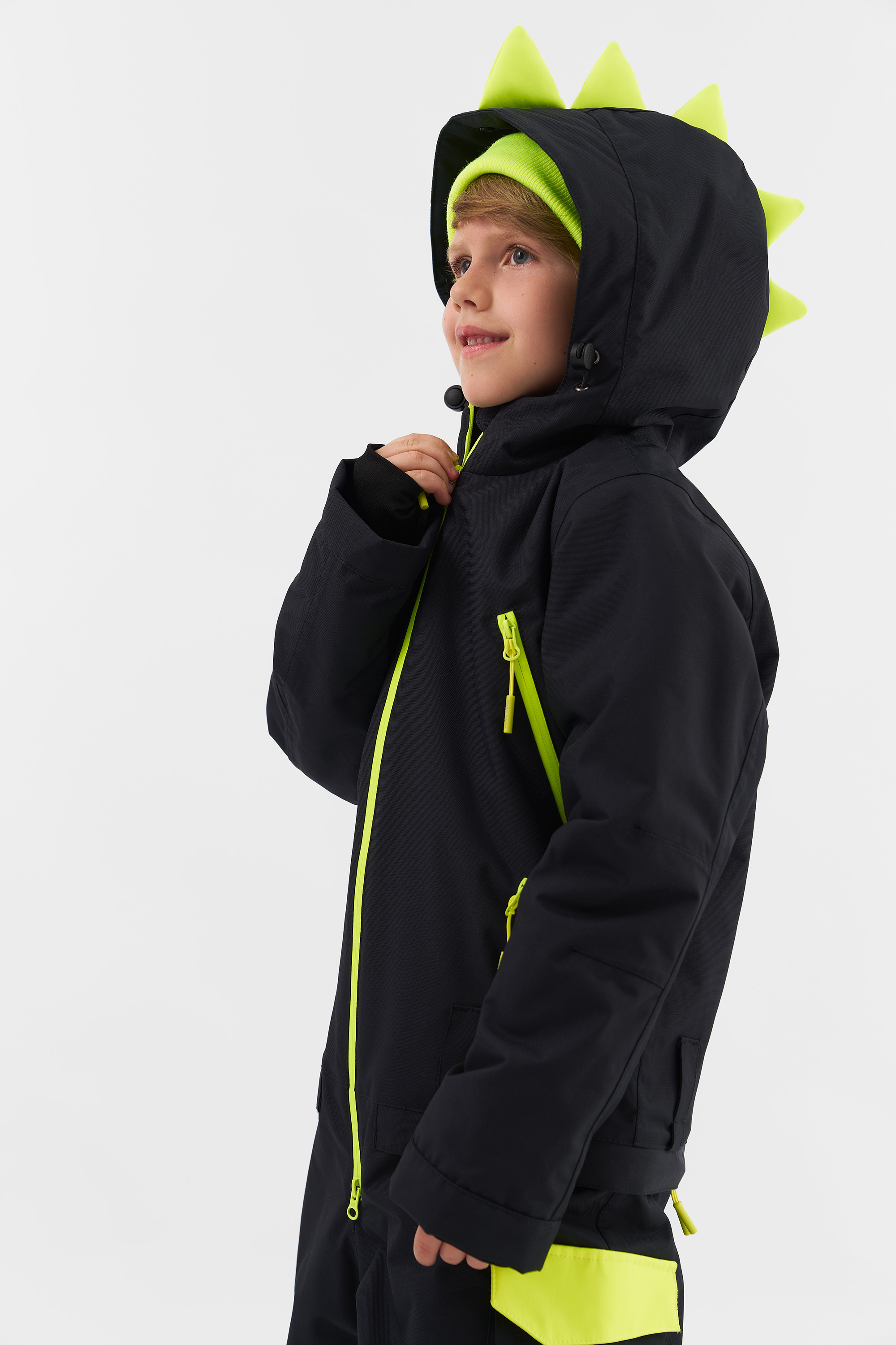 Комбинезон Dino – это настоящий хит для маленьких любителей приключений! С яркими шипами на капюшоне, как у настоящих динозавров, этот комбинезон добавит игривости в зимние прогулки и точно не оставит незамеченным вашего юного райдера. Благодаря системе "Я расту", длина рукавов и штанин может увеличиваться с ростом ребенка.