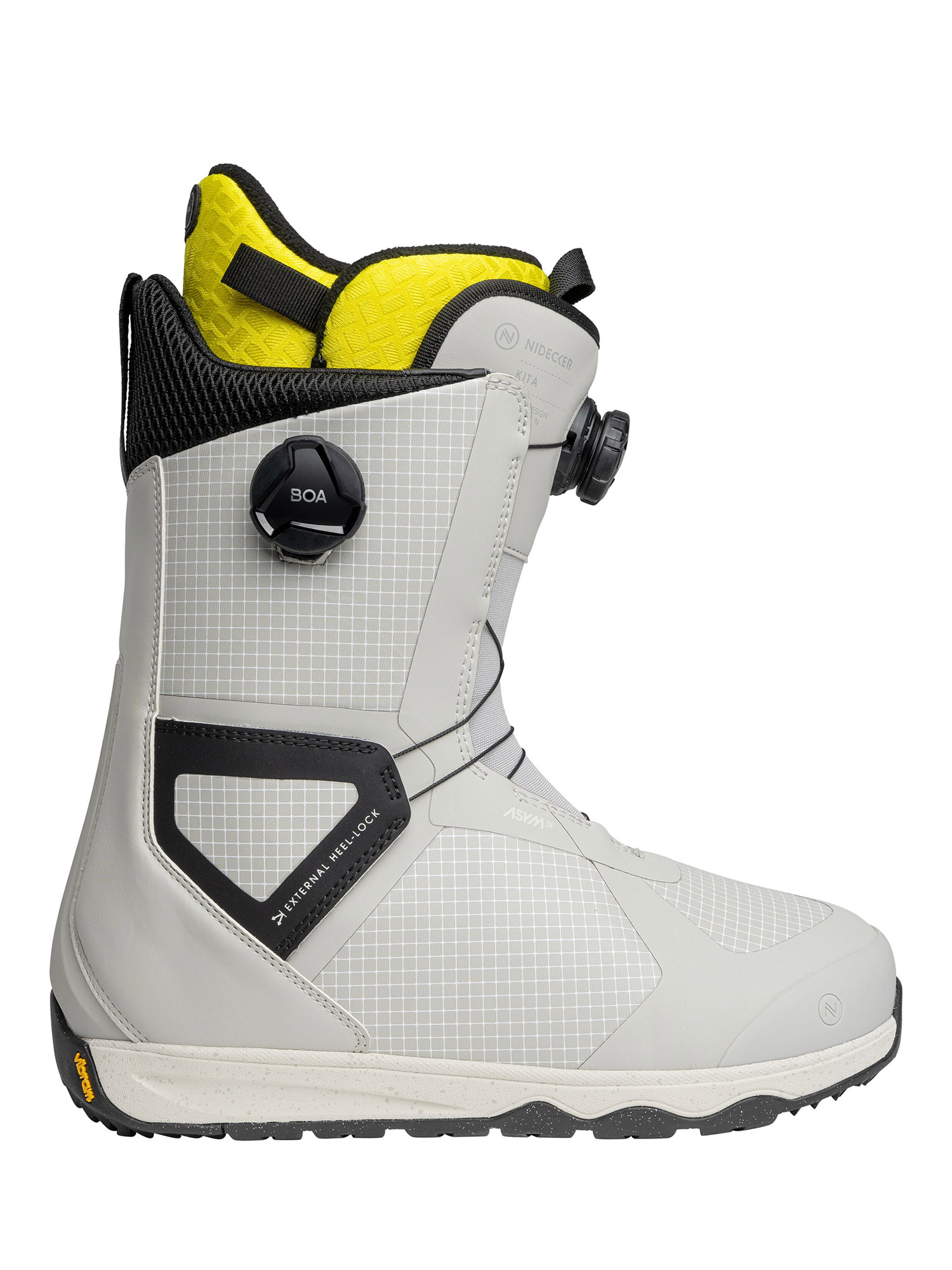 Dual BOA® — система с двумя дисками (над языком и сбоку), позволяющая независимо регулировать верхнюю и нижнюю зоны. Текстильный шнурок TX3 обеспечивает точную фиксацию ASYM 3F – ассиметричная конструкция ботинка идеально сочетается со стрепами креплений Nidecker и Flow, что исключает чрезмерное давление на стопу.