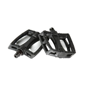 Недорогие легкие пластиковые педали. Имеют двояковогнутую поверхность - за счет этого нога меньше устает и более плотно фиксируется на платформе педали. Корпус Fantastic Plastic изготовлен из специального состава нейлона и стекловолокна. На каждой стороне педали отлиты 12 шипов, имеющих средний диаметр как оптимальное решение хорошей фиксации ноги и износостойкости. Внутри корпуса установлены обслуживаемые шарикоподшипники с обеих сторон. Ось педали выполнена из стали, покрыта цветным гальваническим покрытием и имеет стандартную резьбу 9/16", совместимую со всеми bmx шатунами. Для установки можно использовать 8 мм шестигранник либо обычный педальный ключ на 15 мм. Выбор Mark Webb!