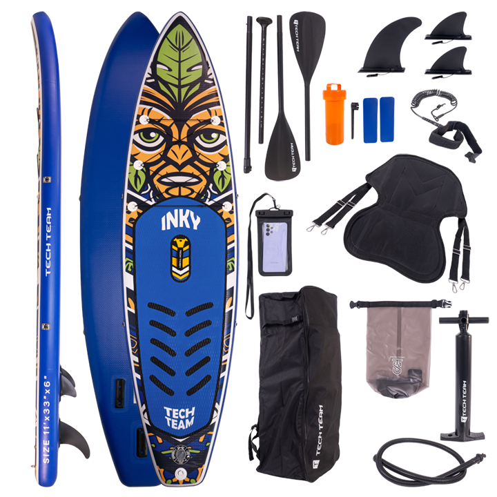Сапборд TechTeam Inky - скоростная модель повышенной грузоподьемности и устойчивости с ярким принтом, развитие модели Funwater Monkey