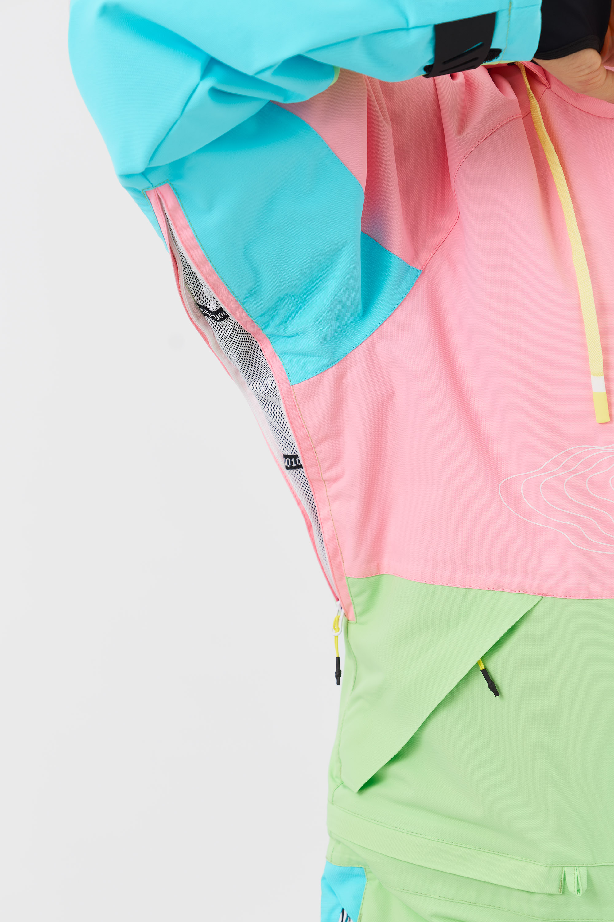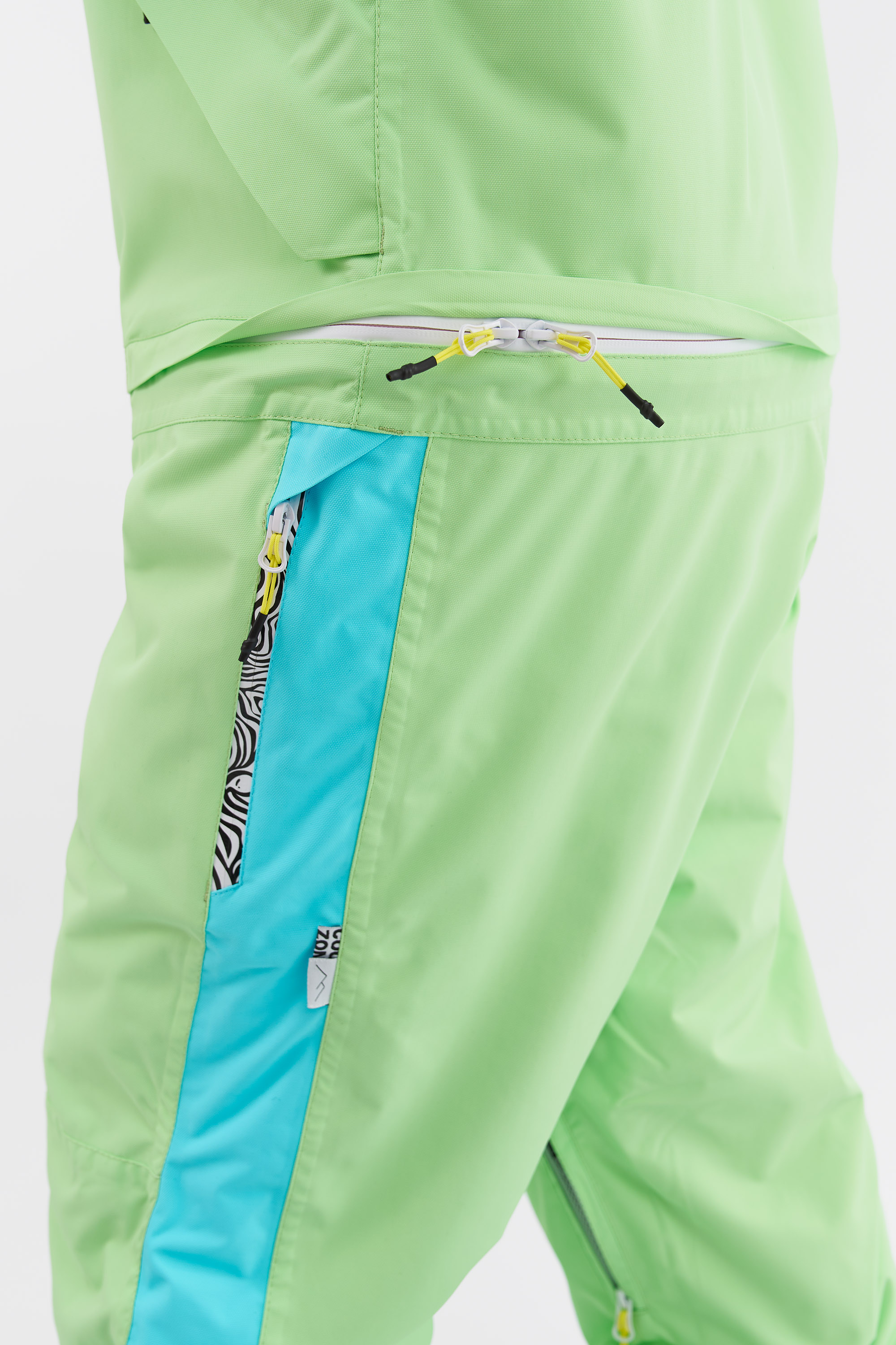 Комбинезон INK идеально подойдёт и для любителей сноукайтинга. В конструкции предусмотрены внутренние липучки у центральной молнии для крепления специальной детали (для вывода крюка от трапеции), а также три бегунка на центральной молнии, что позволяет надеть трапецию под комбинезон. Это решение помогает полностью исключить попадание ветра и снега внутрь во время катания. (Деталь для трапеции приобретается отдельно.)