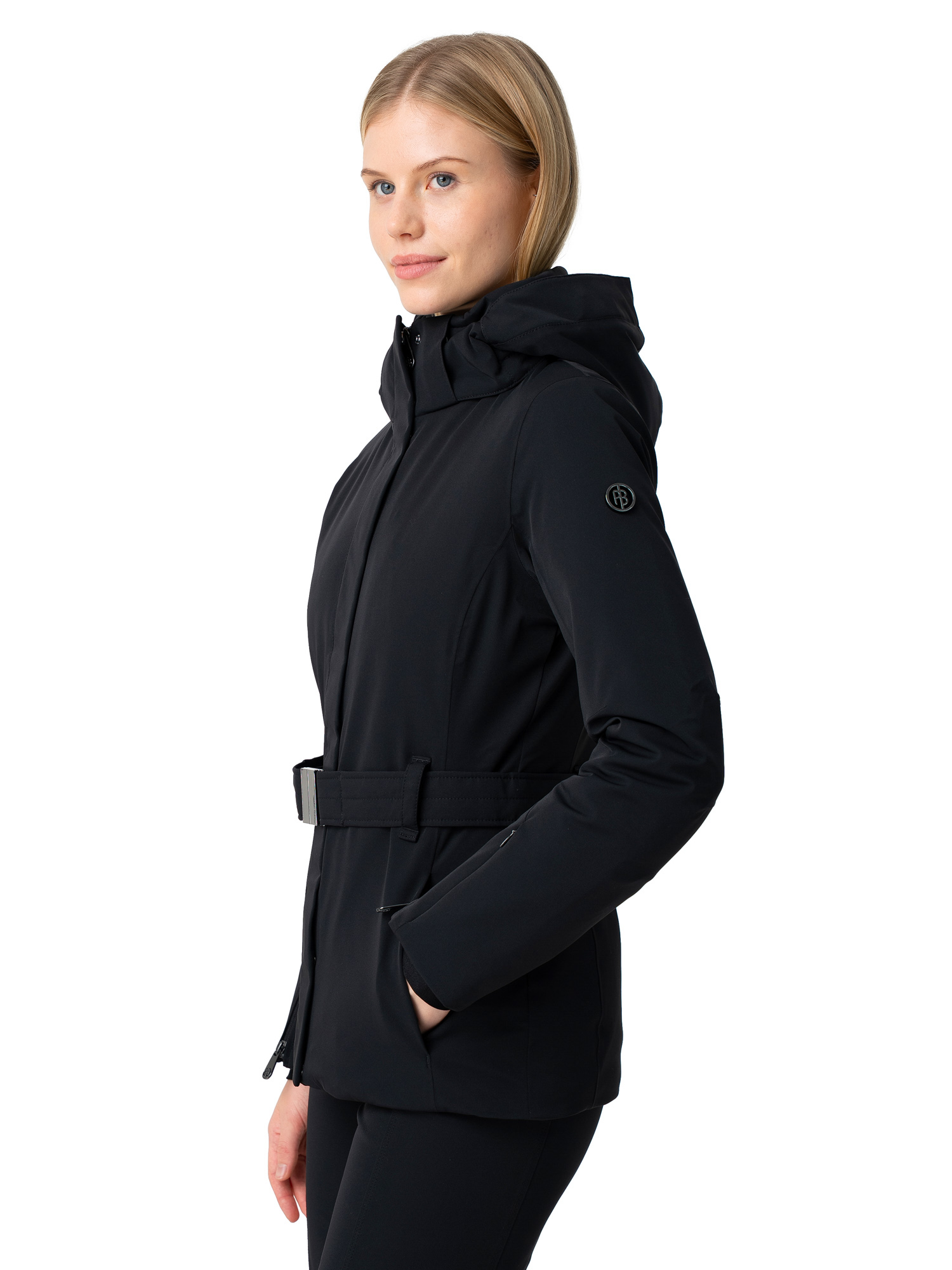 Съёмный регулируемый пояс позволяет настроить посадку и подчёркивает силуэт.Регулировка подола шнурком защищает от продувания и попадания снега снизу.