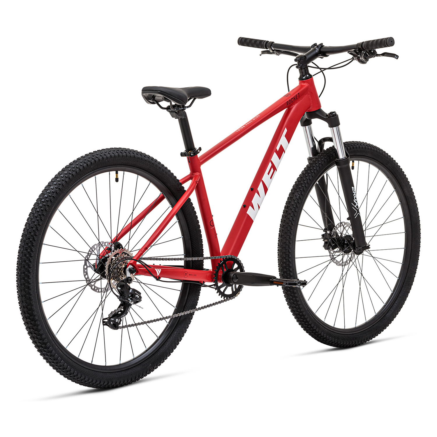 Welt Rocket 1.0 HD - это начальная модель на 29-х колесах в линейке горных велосипедов Welt 2025 года. Велосипед подходит для универсального катания по пересеченной местности, городским паркам и улицам. Более технологичная рама с конусным рулевым стаканом выдерживает повышенные нагрузки. Внутренняя проводка тросов не только защищает их от повреждения, но и делает вид рамы более "чистым" и стильным. Амортизационная вилка с ходом 100 мм смягчает езду на бездорожье, а механическая блокировка облегчает педалирование на ровном асфальте, гладком грунте и поможет легко заехать на горку.