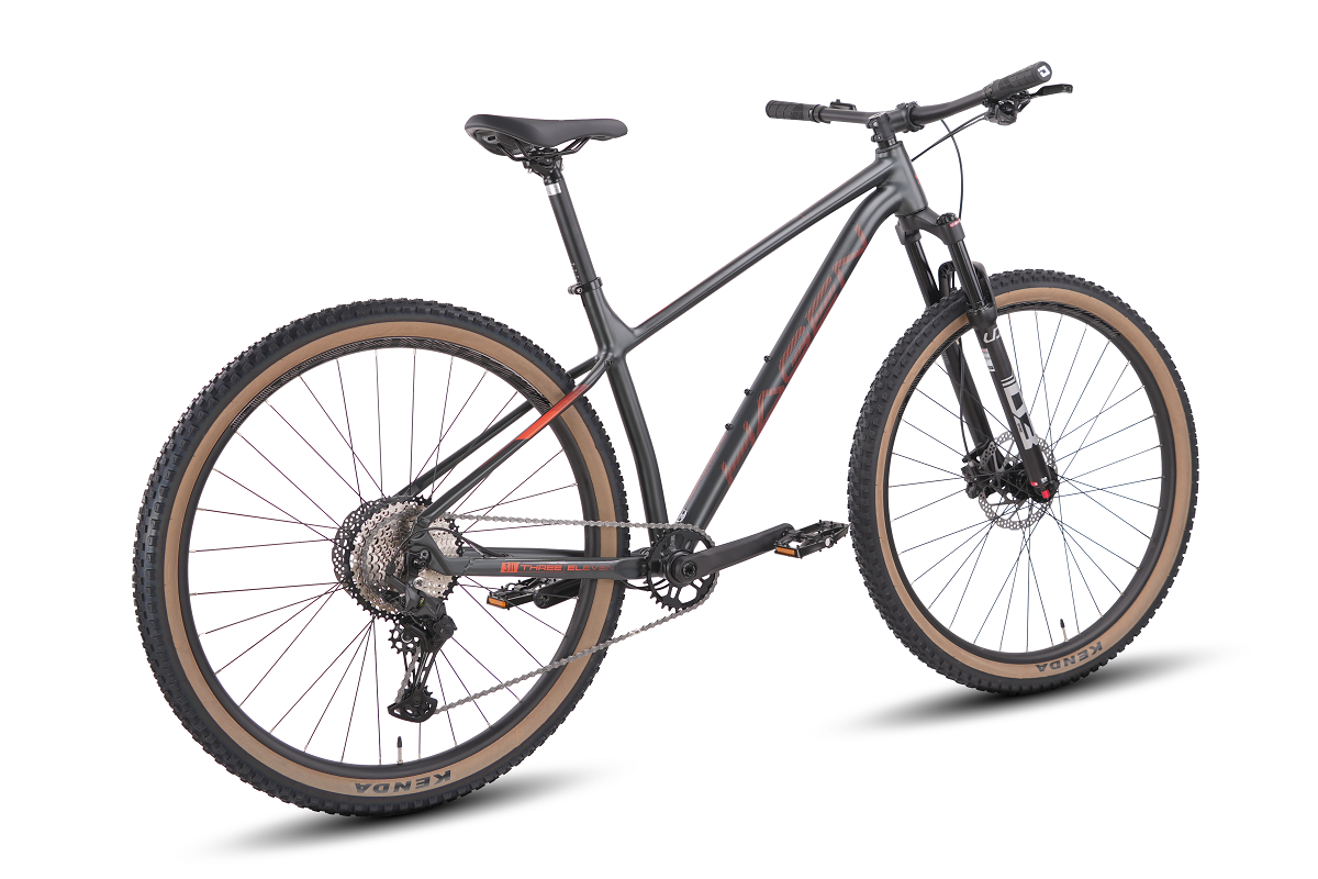 Трансмиссия 1х11, задний переключатель Shimano Deore, воздушная(!) вилка с ногами 30мм и регулировкой отскока. Каретка с внешними подшипниками и сквозной осью. Кассета на 46 зубьев.