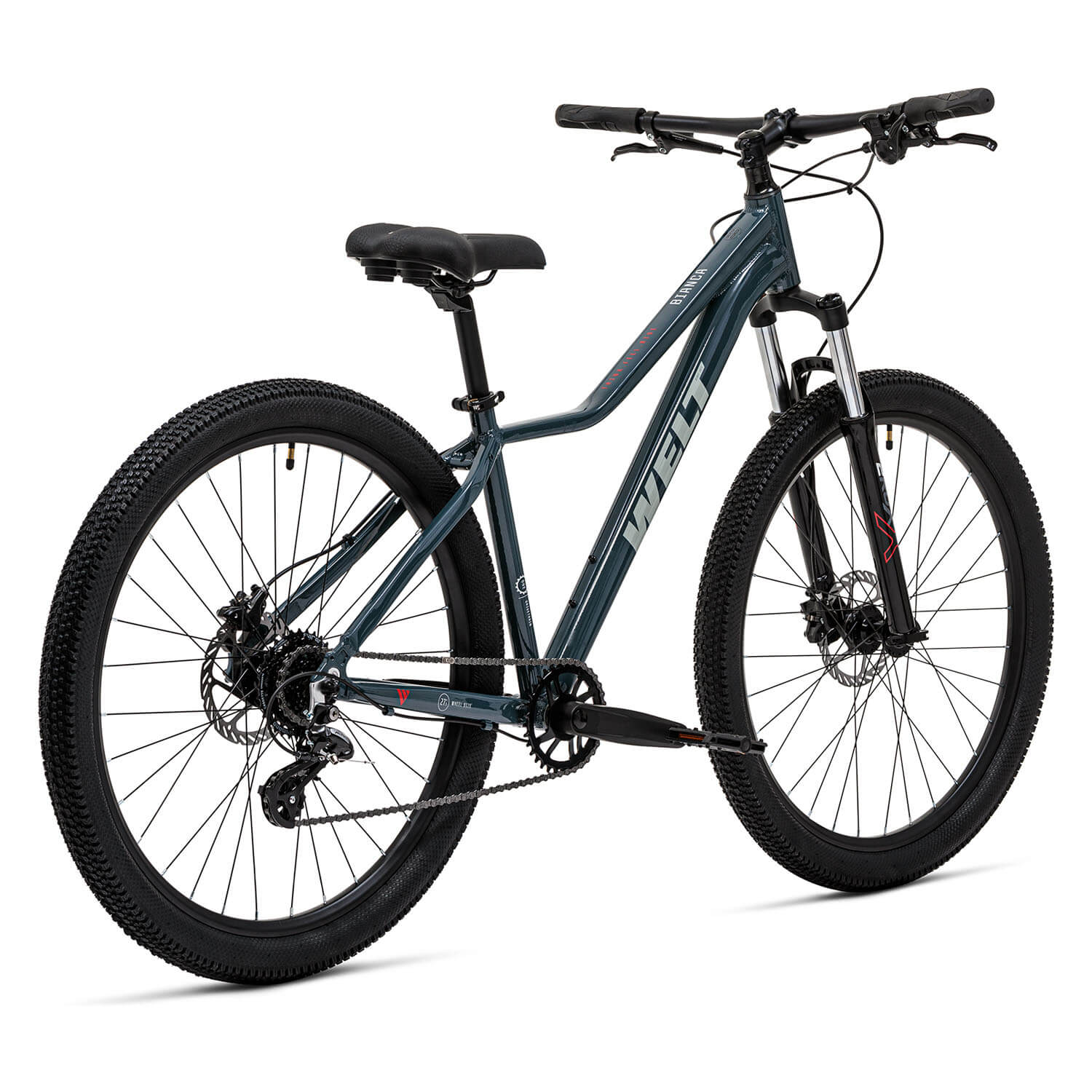 Bianca - это начальная женская модель с колесами 27,5" в линейке горных велосипедов Welt 2026 года. Лёгкая алюминиевая рама адаптирована под особенности женской анатомии. Модель также имеет эргономичные грипсы и комфортное женское седло. Велосипед предназначен для спокойного прогулочного катания по паркам, легкому бездорожью или городским улицам.